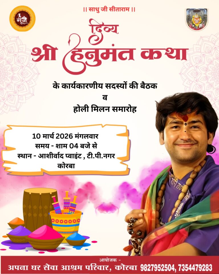 त्रिनेत्र टाइम्स कोरबा ****//** कोरबा की पावन धरती पर जल्द ही भक्ति, आस्था और सनातन संस्कृति का भव्य...