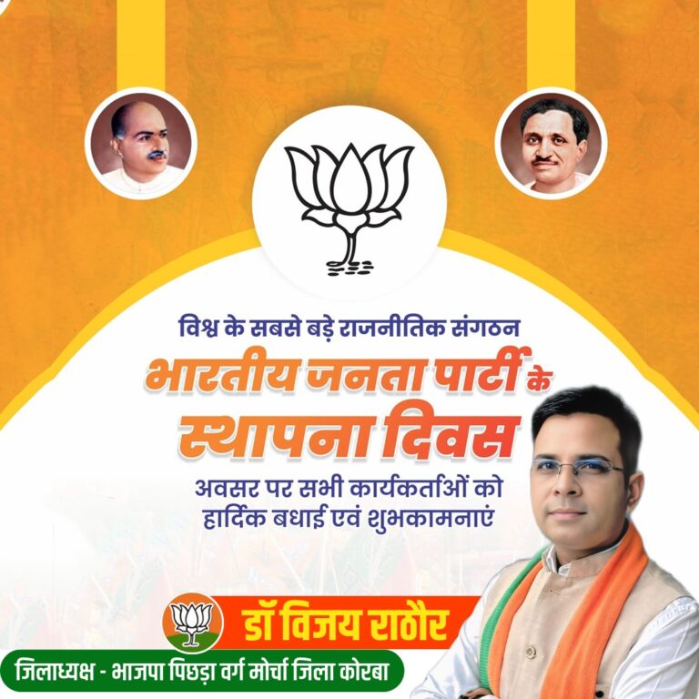 त्रिनेत्र टाइम्स कोरबा ****/*/* रायपुर। भारतीय जनता पार्टी के 47वें स्थापना दिवस पर छत्तीसगढ़ में उत्साह, संगठन शक्ति...