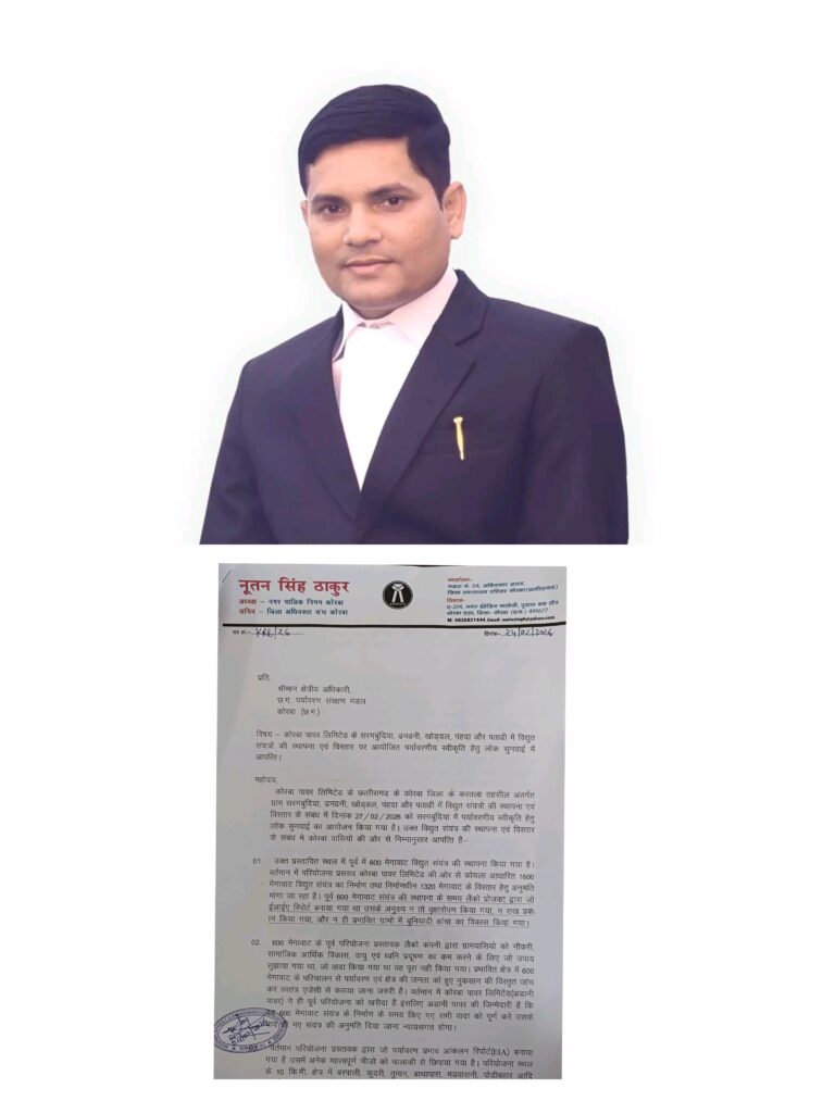 त्रिनेत्र टाइम्स कोरबा ****//**कोरबा। औद्योगिक नगरी कोरबा में प्रस्तावित नए विद्युत संयंत्रों को लेकर विरोध के स्वर तेज...