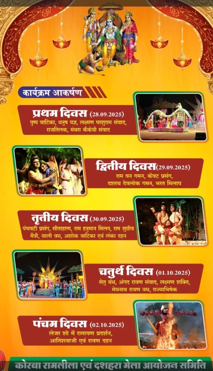 त्रिनेत्र टाइम्स कोरबा **/ कोरबा रामलीला एवं दशहरा मेला आयोजन समिति द्वारा इस वर्ष भव्य पांच दिवसीय रामलीला एवं दशहरा...