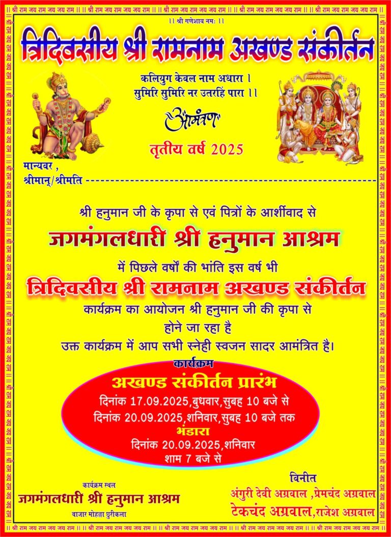 कोरबा, 12 सितम्बर 2025: त्रिनेत्र टाइम्स कोरबा ****/ जगमंगलधारी श्री हनुमान आश्रम, बाजार मोहल्ला छुरी कला, कोरबा में श्री...