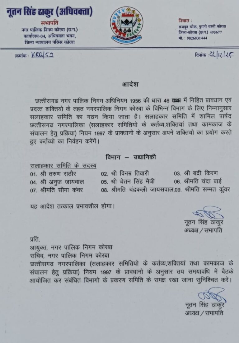 त्रिनेत्र टाइम्स कोरबा ****/ कोरबा नगर पालिका निगम कोरबा में नगर विकास की योजनाओं को और अधिक प्रभावी, सहभागी और...