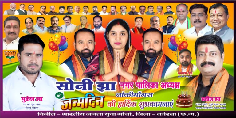 त्रिनेत्र टाइम्स कोरबा ****/ बांकीमोंगरा। नगरपालिका अध्यक्ष सोनी झा का जन्मदिन कल हर्षोल्लास और उत्साह के साथ मनाया जाएगा। जन्मदिन...