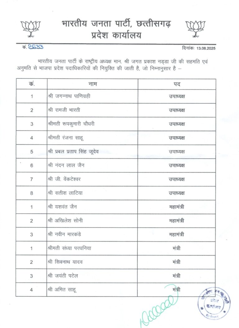त्रिनेत्र टाइम्स कोरबा ****//** कोरबा भारतीय जनता पार्टी के संगठन को और अधिक मजबूत, गतिशील एवं प्रभावी बनाने की दिशा...