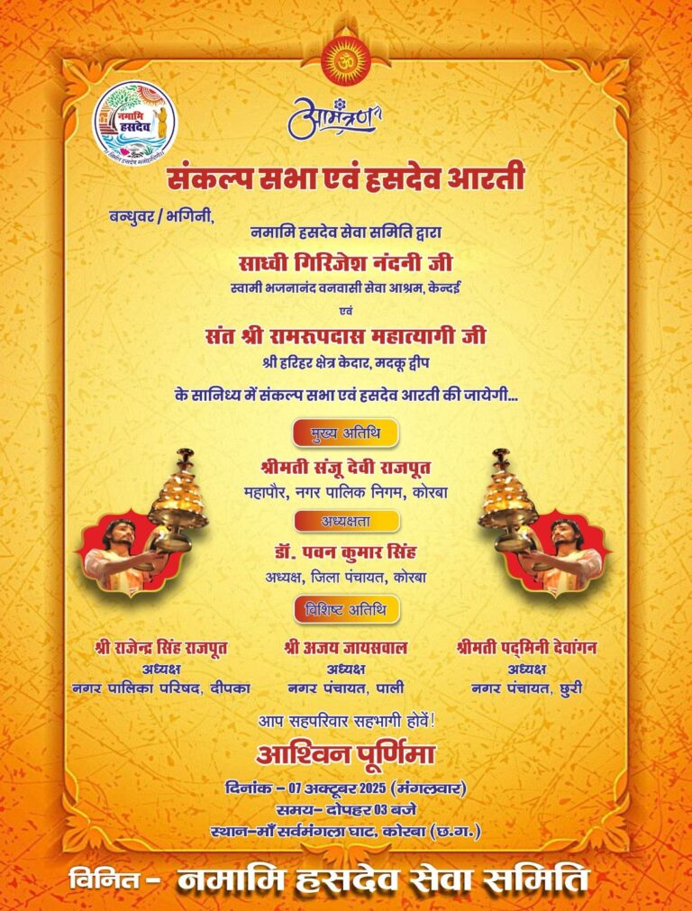 कोरबा। शरद पूर्णिमा के पावन पर्व पर 06 अक्टूबर 2025, सोमवार को चित्रकूट की प्रसिद्ध दिव्य औषधि का निशुल्क वितरण...