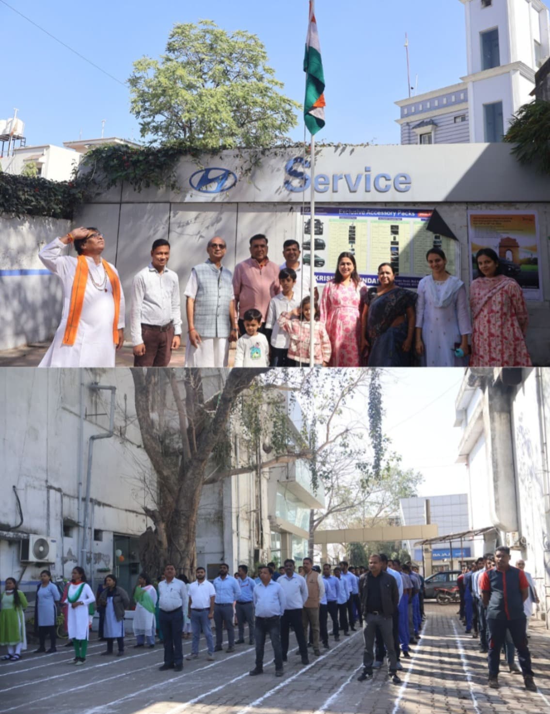इसी क्रम में कृष्णा हुंडई शो रूम कोरबा में गणतंत्र दिवस का आयोजन रविवार, 26 जनवरी 2025 को हुआ। इस अवसर पर कृष्णा ग्रुप के चेयरमेन, डायरेक्टर्स, कृष्णा ग्रुप परिवार और स्टॉफ की उपस्थिति में भारत माता के तेल चित्र पर माल्यार्पण किया गया और दीप प्रज्वलित किए गए। इसके बाद ध्वजारोहण किया गया और राष्ट्रगान गाया गया।