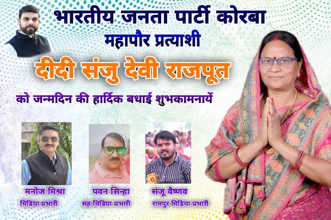 त्रिनेत्र टाइम्स कोरबा ****/ नगर निगम की भाजपा महापौर प्रत्याशी श्रीमती संजू देवी राजपूत के जन्मदिन के अवसर पर कार्यकर्ताओं और समर्थकों में जबरदस्त उत्साह देखने को मिला। सभी ने उन्हें हार्दिक शुभकामनाएं देते हुए उनके सफल, स्वस्थ और उज्जवल भविष्य की कामना की।
