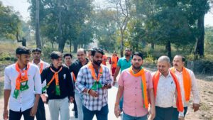 त्रिनेत्र टाइम्स कोरबा ****/ वार्ड 39 के सेक्टर 6 में भारतीय जनता पार्टी की महापौर प्रत्याशी दीदी संजू देवी राजपूत एवं पार्षद प्रत्याशी भाई तरुण राठौर के समर्थन में जोरदार प्रचार-प्रसार किया गया। भाजपा कार्यकर्ताओं और स्थानीय समर्थकों ने पूरे उत्साह के साथ जनसंपर्क अभियान चलाया और मतदाताओं से समर्थन की अपील की। प्रचार अभियान के दौरान भाजपा प्रत्याशियों ने जनता से मुलाकात कर अपनी योजनाओं और विकास के संकल्पों को साझा किया। क्षेत्रवासियों ने भी भाजपा प्रत्याशियों को समर्थन देने का भरोसा दिलाया।