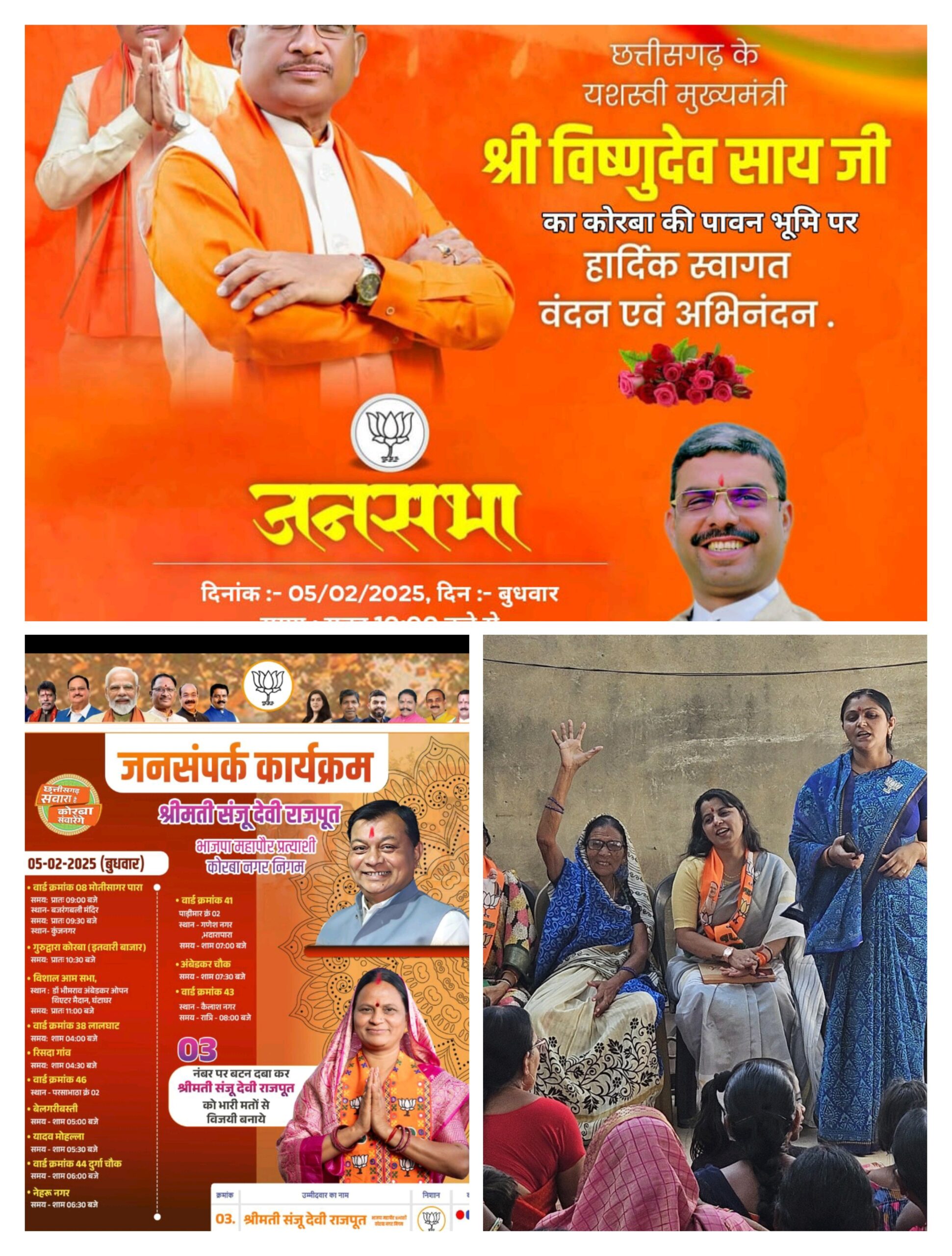 त्रिनेत्र टाइम्स कोरबा ****/ कोरबा नगर पालिक निगम चुनाव के तहत 4 फरवरी को महिला लाभार्थी संपर्क अभियान का आयोजन किया गया, जिसमें बड़ी संख्या में लाभार्थी बहनों ने भाग लिया। इस अवसर पर भाजपा की महापौर प्रत्याशी श्रीमती संजू देवी राजपूत एवं वार्ड क्रमांक 26 के पार्षद प्रत्याशी श्री अजय विश्वकर्मा के समर्थन में जोरदार अपील की गई।
