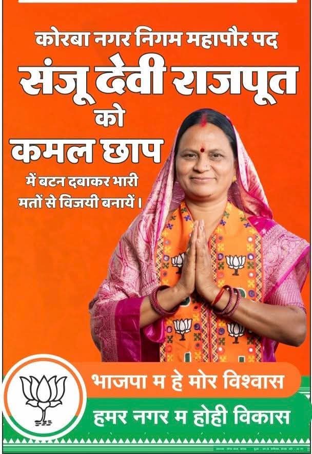त्रिनेत्र टाइम्स कोरबा **/ कोरबा में आगामी चुनाव को लेकर माहौल गर्म है, और भारतीय जनता पार्टी ने महापौर प्रत्याशी के रूप में मृदुभाषी, सरल, सौम्य, निष्ठावान और लोकप्रिय महिला नेत्री श्रीमती संजू देवी राजपूत जी को मैदान में उतारा है।