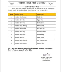 भाजपा प्रदेश संगठन के अनुसार, ये पर्यवेक्षक नगर निकायों के अध्यक्ष पद के चुनाव प्रक्रिया में भाग लेंगे और पार्टी के रणनीतिक दिशा-निर्देशों को लागू करने में मदद करेंगे।