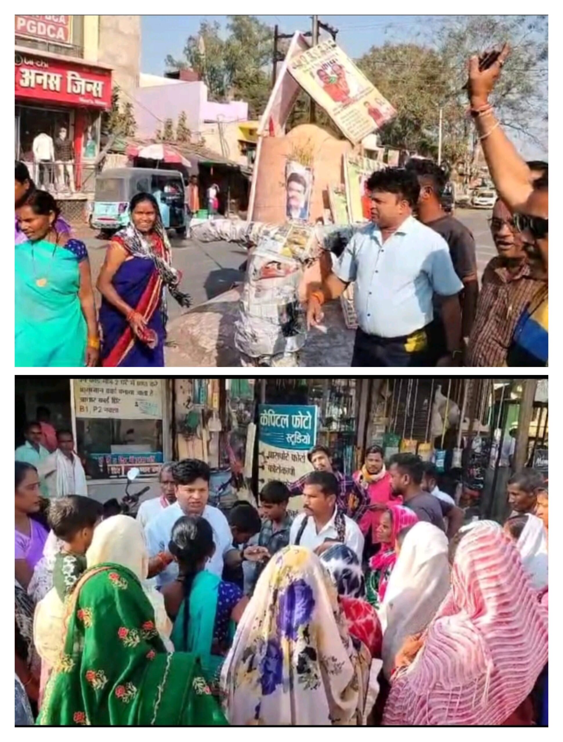 त्रिनेत्र टाइम्स कोरबा *****/ रतनपुर: नगरीय निकाय चुनाव में टिकट न मिलने से नाराज एवं पार्टी से निष्कासित कांग्रेस नेताओं ने अपनी हार के बाद सोमवार को महामाया चौक में कोटा विधायक अटल श्रीवास्तव के खिलाफ विरोध प्रदर्शन किया। इस दौरान विधायक का पुतला दहन कर “अटल की दादागिरी नहीं चलेगी” और “कोटा बचाओ, विधायक हटाओ” जैसे नारे लगाए गए।