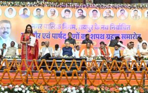 इस मौके पर नव-निर्वाचित महापौर श्रीमती मीनल चौबे और सभी पार्षदगणों ने पद और गोपनीयता की शपथ ली। समारोह को संबोधित करते हुए मुख्यमंत्री श्री विष्णु देव साय ने नगर निगम की नई टीम को बधाई दी और रायपुर को स्वच्छ, सुंदर और आधुनिक शहर बनाने की दिशा में ईमानदारी और समर्पण से कार्य करने का आह्वान किया।