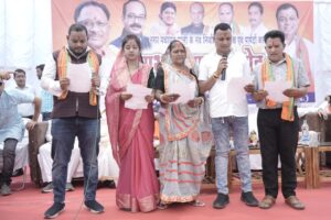 उद्योग मंत्री लखनलाल देवांगन और जिला अध्यक्ष मनोज शर्मा की उपस्थिति में अध्यक्षों ने ली शपथ