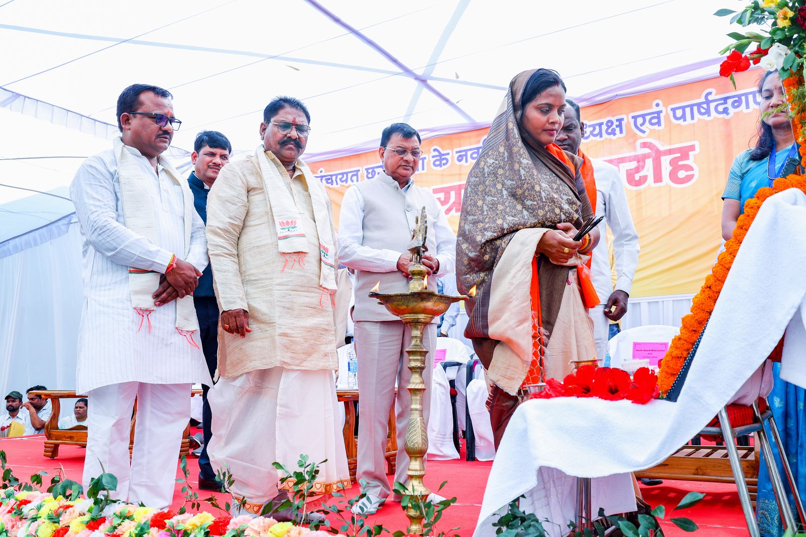 इस शपथ ग्रहण समारोह में छत्तीसगढ़ शासन के उद्योग, वाणिज्य एवं श्रम मंत्री लखनलाल देवांगन मुख्य अतिथि के रूप में उपस्थित रहे, जबकि विधायक प्रेमचंद पटेल भी विशिष्ट अतिथि के रूप में शामिल हुए।