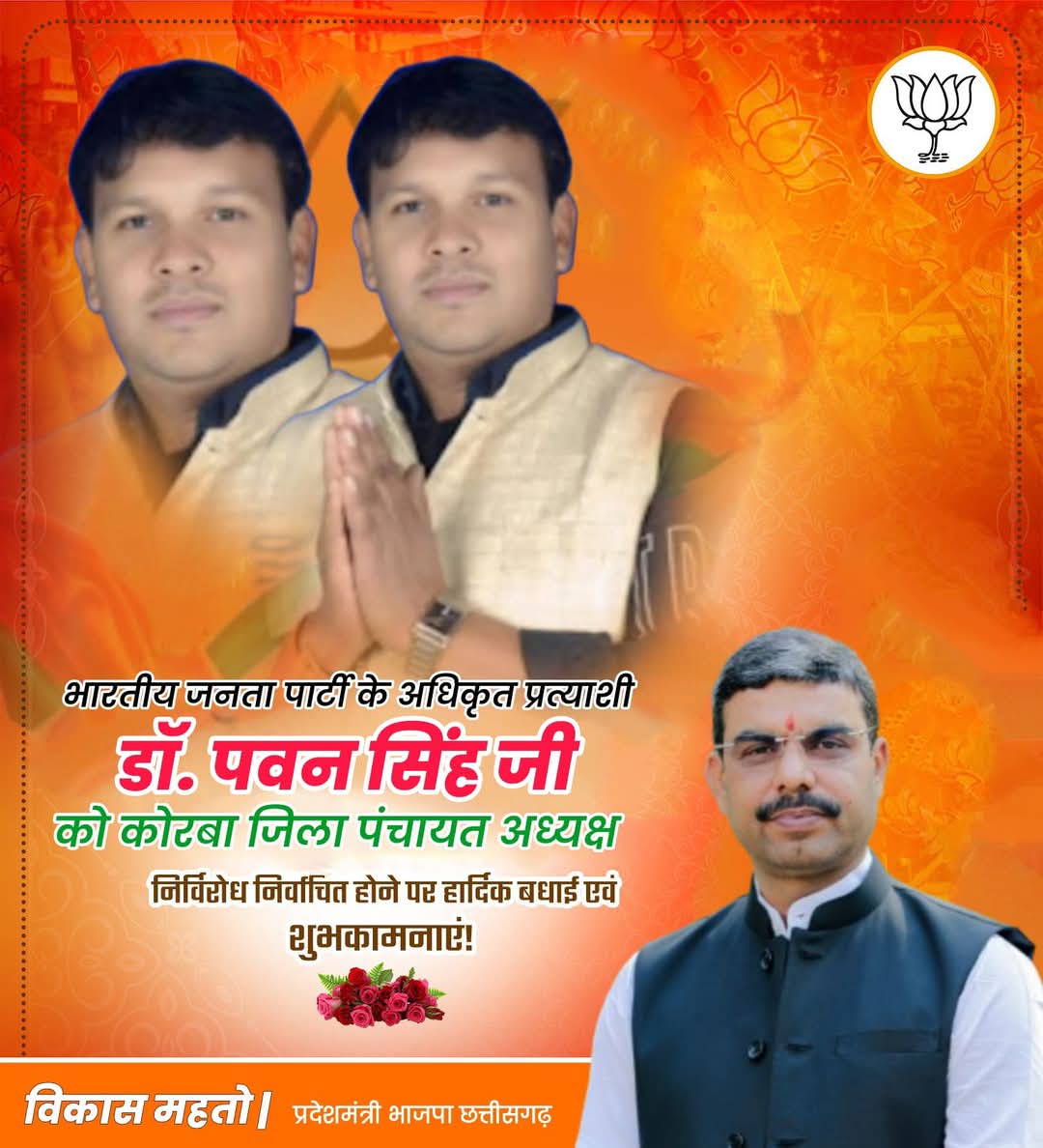 Uncategorized डॉ. पवन सिंह बने कोरबा जिला पंचायत अध्यक्ष, निर्विरोध हुआ चुनाव 1 year ago Pawan kumar Sinha त्रिनेत्र टाइम्स कोरबा: कोरबा जिला पंचायत अध्यक्ष पद का चुनाव संपन्न हो चुका है, जिसमें डॉ. पवन सिंह निर्विरोध रूप से अध्यक्ष चुन लिए गए हैं। भाजपा समर्थित पवन सिंह के खिलाफ कांग्रेस ने कोई प्रत्याशी चुनावी मैदान में नहीं उतारा। Continue Reading Previous गति’ के जरिए ही प्रदेश सरकार ‘ज्ञान’ के लिए लक्ष्य को अर्जित करेगी : ओ.पी. चौधरीNext डॉ. पवन सिंह बने कोरबा जिला पंचायत अध्यक्ष, निर्विरोध हुआ चुनाव