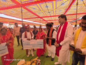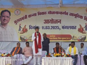त्रिनेत्र टाइम्स कोरबा रायपुर ****/। मुख्यमंत्री कन्या विवाह योजना के अंतर्गत सुकमा जिले में भव्य सामूहिक विवाह समारोह आयोजित किया गया, जिसमें भारतीय जनता पार्टी के प्रदेश अध्यक्ष किरण सिंह देव व प्रदेश के वन मंत्री केदार कश्यप ने विशेष रूप से शिरकत की। इस दौरान नवविवाहित जोड़ों को आशीर्वाद देते हुए श्री देव ने कहा कि यह योजना समाज में बेटियों को सम्मान और सहायता प्रदान करने का एक महत्वपूर्ण कदम है। उन्होंने कहा कि हमारी सरकार बेटियों के उज्ज्वल भविष्य के लिए संकल्पित है और उन्हें सशक्त बनाने हेतु हरसंभव प्रयास कर रही है।