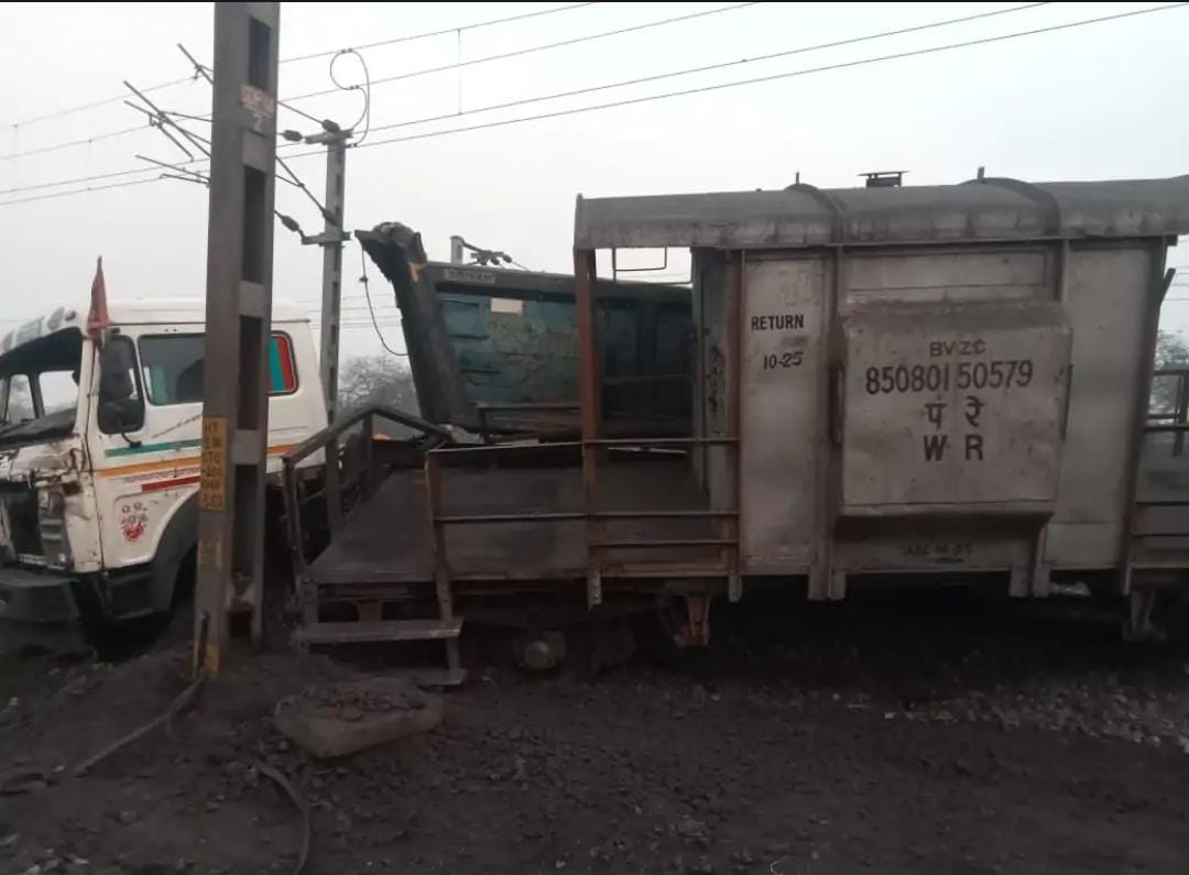 कोरबा में चलती मालगाड़ी से टकराया ट्रक, गार्ड ब्रेक डिब्बा पटरी से उतरा!