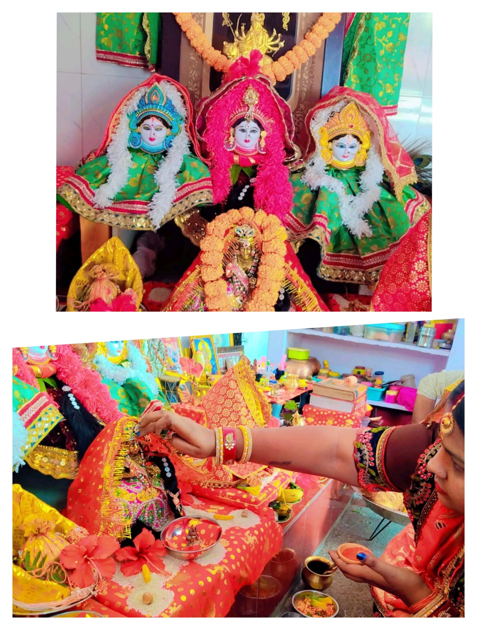 घर में सजी माता रानी की दिव्य चौकी: चैत्र नवरात्रि की भक्ति में लीन परिवार