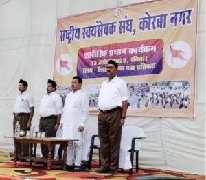 राष्ट्रीय स्वयंसेवक संघ कोरबा नगर का शारीरिक प्रमुख कार्यक्रम संपन्न – 150 स्वयंसेवकों ने किया अद्भुत प्रदर्शन