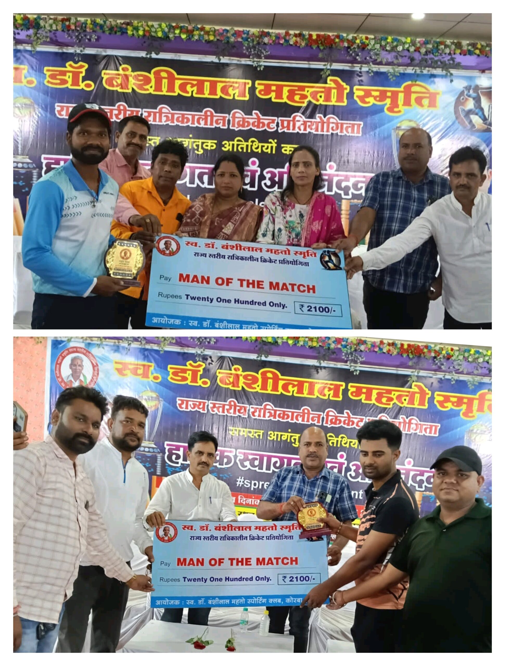पहले मुकाबले में उपस्थित रहीं मुख्य अतिथि श्रीमती उर्वशी राठौर, पार्षद श्री ईश्वर पटेल और पत्रकार रेनू जायसवाल, जिन्होंने खिलाड़ियों को सम्मानित किया और आयोजन की सराहना की।