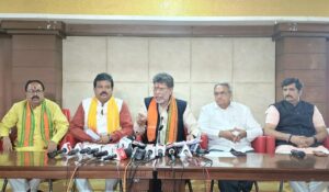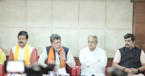 प्रेस वार्ता में प्रदेश भाजपा महामंत्री एवं नागरिक आपूर्ति निगम अध्यक्ष श्री संजय श्रीवास्तव,
