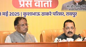 प्रेस वार्ता में केंद्रीय मंत्री डॉ. जितेंद्र सिंह के साथ प्रदेश के मुख्यमंत्री श्री विष्णु देव साय, भाजपा के मुख्य प्रवक्ता विधायक व पूर्व मंत्री अजय चंद्राकर ,प्रदेश महामंत्री संजय श्रीवास्तव ,रामू रोहरा,वक्फ बोर्ड के अध्यक्ष डॉ. सलीम रा,ज भाजपा प्रदेश मीडिया प्रभारी अमित चिमनानी सह प्रभारी अनुराग अग्रवाल मौजूद रहे।