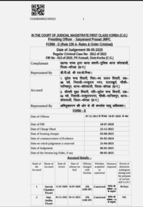 त्रिनेत्र टाइम्स कोरबा। ***दादरखुर्द क्षेत्र में जमीन बिक्री के नाम पर धोखाधड़ी करने वाले प्रोफेसर सुरेशचंद तिवारी और उनकी पत्नी को न्यायालय ने दोषी पाते हुए तीन-तीन साल के कठोर कारावास की सजा सुनाई है। दोनों पर 10-10 हजार रुपए का अर्थदंड भी लगाया गया है। साथ ही, पीड़ित पक्ष को 25.5 लाख रुपए तीन माह के भीतर अदा करने का निर्देश दिया गया है।