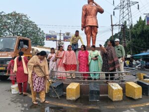अभियान में नगर निगम के स्वच्छता कर्मियों एवं अधिकारियों ने भी सक्रिय भागीदारी निभाई। प्रतिमाओं के साथ आसपास के क्षेत्र की भी सफाई कर सुंदर वातावरण बनाया गया।