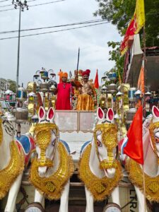 🌸 नगरवासियों द्वारा पुष्पवर्षा, जिसने प्रतिभागियों का उत्साह द्विगुणित किया।