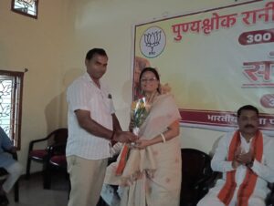 समारोह का समापन रानी अहिल्याबाई की प्रतिमा के समक्ष सामूहिक पुष्पांजलि अर्पण कर उनके योगदान को सम्मानपूर्वक स्मरण करते हुए किया गया।