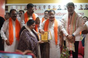 आज के कार्यक्रम में श्रीमती रेणुका पुराणिक , श्रीमती रानू धनगर , श्रीमती मीना निषाद, श्रीमती भारती उपाध्याय, श्रीमती माधुरी कर, श्रीमती तापसी दत्ता, श्रीमती सुशीला साहू, श्रीमती डिंपल शर्मा, श्रीमती बिंदिया नाग, श्रीमती हेमलता मिश्रा, श्रीमती कांति जैन लूनिया, श्रीमती सुमिता साहू, और डॉ सुमन मित्तल को प्रदेश भाजपा अध्यक्ष ने सम्मानित किया ।