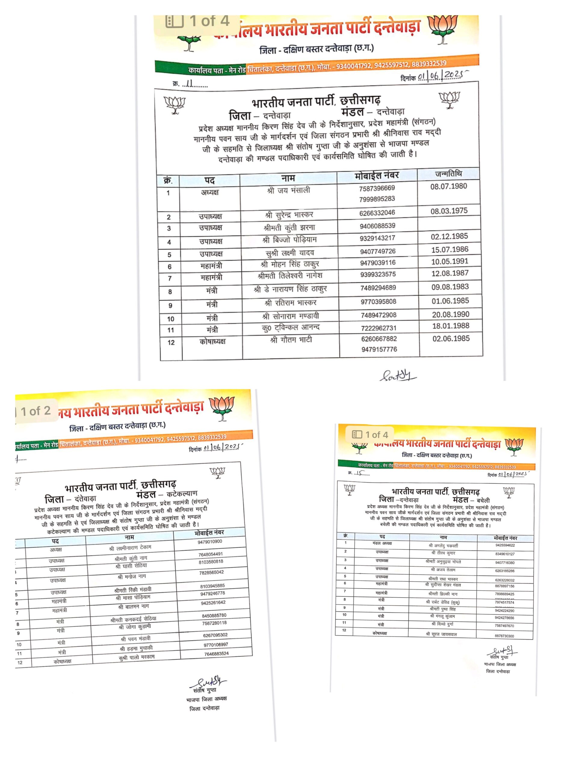 भाजपा ने किया मंडल विस्तार: दंतेवाड़ा जिले के सातों मंडलों में पदाधिकारी घोषित, विधायक अटामी और जिलाध्यक्ष गुप्ता ने दी शुभकामनाएं