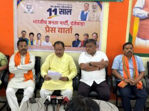 त्रिनेत्र टाइम्स कोरबा राहुल ****/ छत्तीसगढ़ के पूर्व भाजपा प्रदेश अध्यक्ष एवं अंतागढ़ विधायक श्री विक्रम उसेंडी ने आज प्रधानमंत्री श्री नरेंद्र मोदी जी के नेतृत्व में केंद्र सरकार के 11 वर्ष पूर्ण होने के उपलक्ष्य में आयोजित प्रेस वार्ता को संबोधित करते हुए कहा कि मोदी जी का नेतृत्व भारत के इतिहास में एक नवयुग का सूत्रपात है। उन्होंने कहा कि इस गौरवशाली दशक में देश ने असाधारण प्रगति की है और आज भारत विश्व पटल पर एक सशक्त, स्वाभिमानी और समावेशी राष्ट्र के रूप में स्थापित हुआ है।