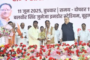 त्रिनेत्र टाइम्स कोरबा ****/ रायपुर 11 जून 2025/ मुख्यमंत्री श्री विष्णु देव साय आज राजधानी रायपुर के बलबीर सिंह जुनेजा इंडोर स्टेडियम में छत्तीसगढ़ राज्य सहकारी बैंक मर्यादित के नवनियुक्त प्राधिकृत अधिकारी श्री केदारनाथ गुप्ता के पदभार ग्रहण एवं अभिनंदन समारोह में शामिल हुए और उन्हें शुभकामनाएं दीं। इस अवसर पर मुख्यमंत्री ने जशपुर जिले के फरसाबहार में अपेक्स बैंक की नई शाखा का वर्चुअल शुभारंभ किया और क्षेत्रवासियों को बधाई दी।