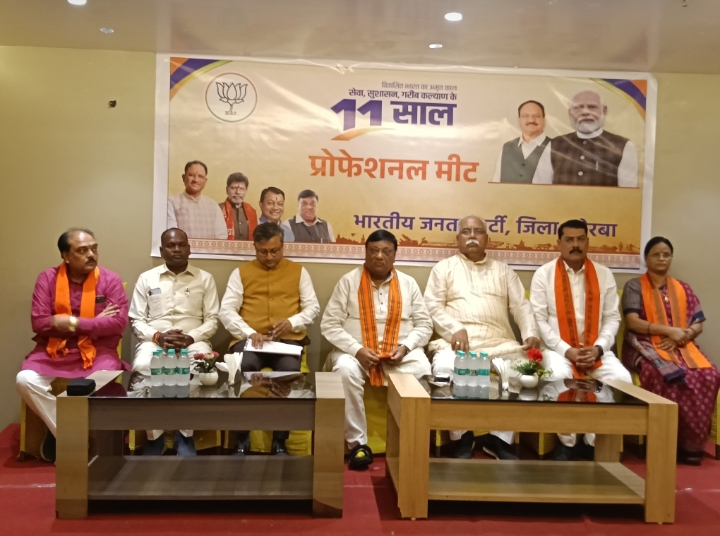 त्रिनेत्र टाइम्स कोरबा ****/ प्रधानमंत्री श्री नरेन्द्र मोदी के नेतृत्व में केंद्र सरकार के 11 वर्ष पूर्ण होने के अवसर पर भारतीय जनता पार्टी, जिला कोरबा द्वारा एक विशेष ‘प्रोफेशनल मीट’ का आयोजन किया गया। इस कार्यक्रम में जिले भर के डॉक्टर, वकील, चार्टर्ड अकाउंटेंट, व्यापारी, शिक्षाविद, विद्यार्थी और अन्य बुद्धिजीवी वर्गों ने उत्साहपूर्वक भाग लिया।