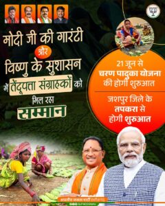 मोदी की गारंटी और विष्णु के सुशासन में तेंदूपत्ता संग्राहकों को मिला सम्मान, जशपुर से शुरू होगी “चरण पादुका योजना”
