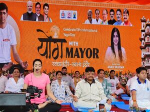 त्रिनेत्र टाइम्स कोरबा ****/ इंदौर। अंतरराष्ट्रीय योग दिवस 2025 के अवसर पर इंदौर में “योग विथ मेयर” कार्यक्रम का भव्य आयोजन किया गया, जिसमें बड़ी संख्या में नागरिकों, जनप्रतिनिधियों एवं योग प्रेमियों ने भाग लिया। कार्यक्रम का उद्देश्य जनमानस में योग के प्रति जागरूकता फैलाना और “करो योग, रहो निरोग” के मंत्र को जीवन में उतारना रहा।