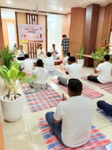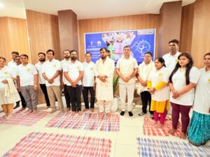 कार्यक्रम की शुरुआत योगाभ्यास से हुई, जिसमें अनुभवी योग प्रशिक्षकों द्वारा प्राणायाम, सूर्य नमस्कार और विभिन्न योग क्रियाओं का अभ्यास कराया गया। सभी अधिकारियों और कर्मचारियों ने पूरे उत्साह के साथ इस अभ्यास में भाग लेते हुए योग के महत्व को आत्मसात किया।