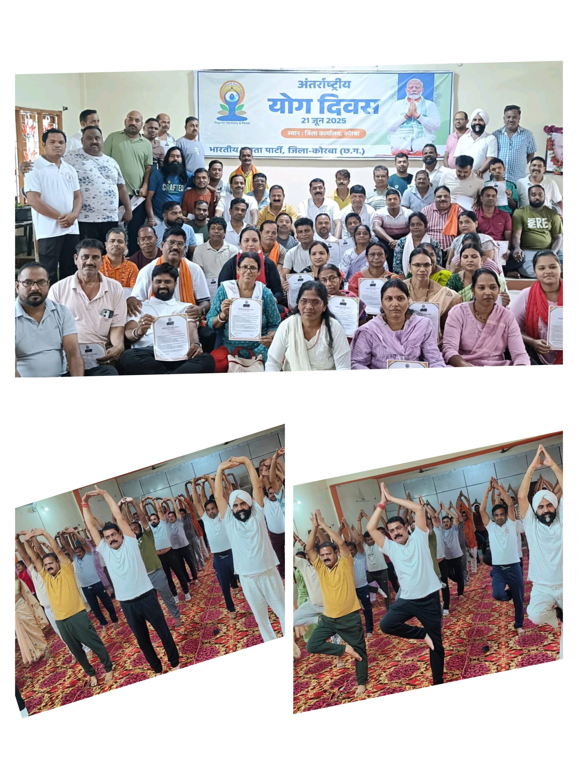 दीप प्रज्वलन से आरंभ हुआ अंतरराष्ट्रीय योग दिवस कार्यक्रम, भाजपा कार्यालय कोरबा में उमड़ा योग का जनसैलाब