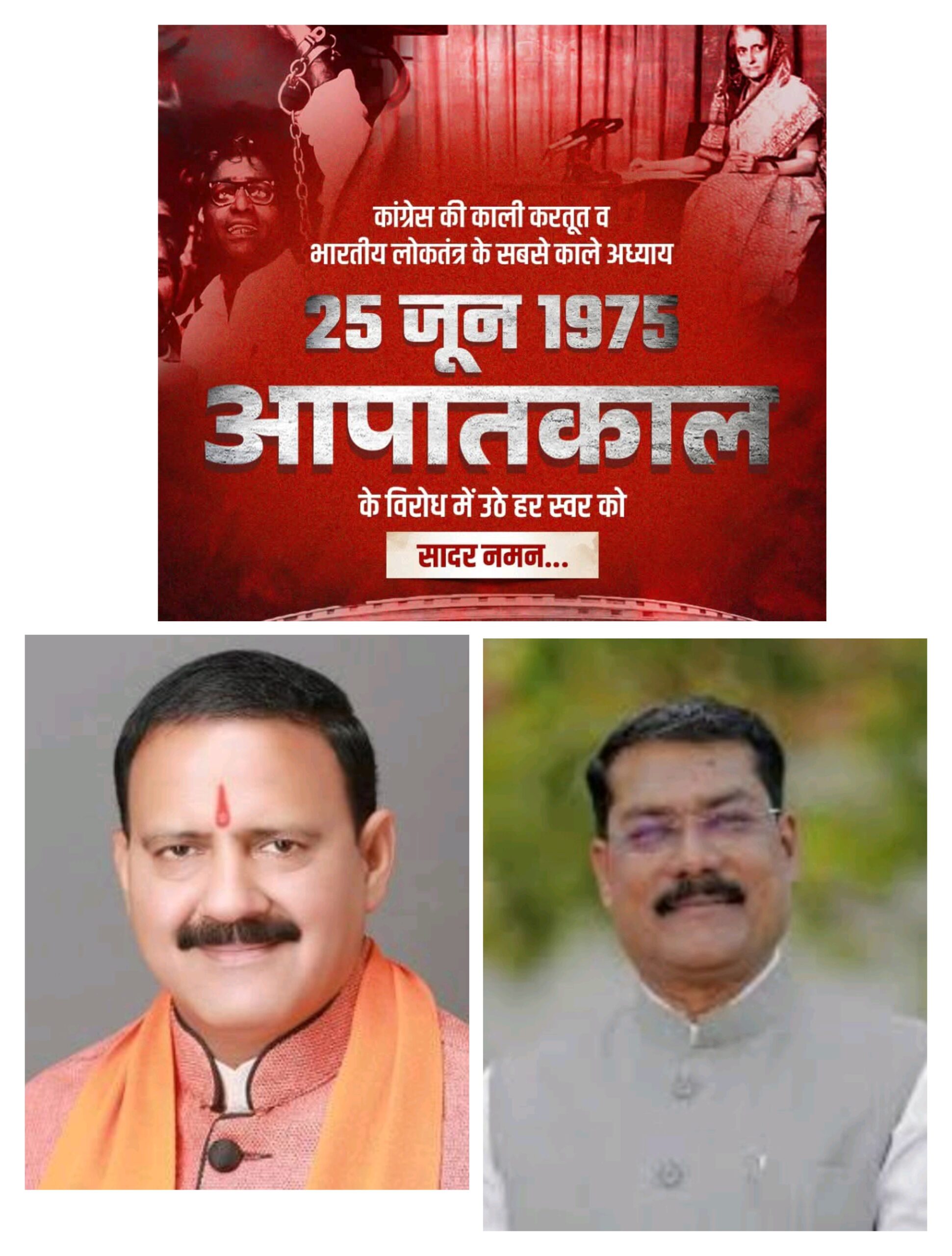 त्रिनेत्र टाइम्स कोरबा ****/ भारतीय लोकतंत्र के इतिहास में 25 जून एक ऐसा दिन है जिसे काले दिन के रूप में याद किया जाता है — जब 1975 में तत्कालीन कांग्रेस सरकार द्वारा देश में आपातकाल लागू किया गया था। उस एकतरफा निर्णय के चलते देश में नागरिक अधिकारों का हनन, प्रेस की स्वतंत्रता पर हमला और संविधान की मूल भावना का दमन हुआ। इस ऐतिहासिक पीड़ा की 50वीं बरसी पर भारतीय जनता पार्टी जिला कोरबा द्वारा एक “आपातकाल संगोष्ठी एवं प्रदर्शनी” का आयोजन किया जा रहा है।