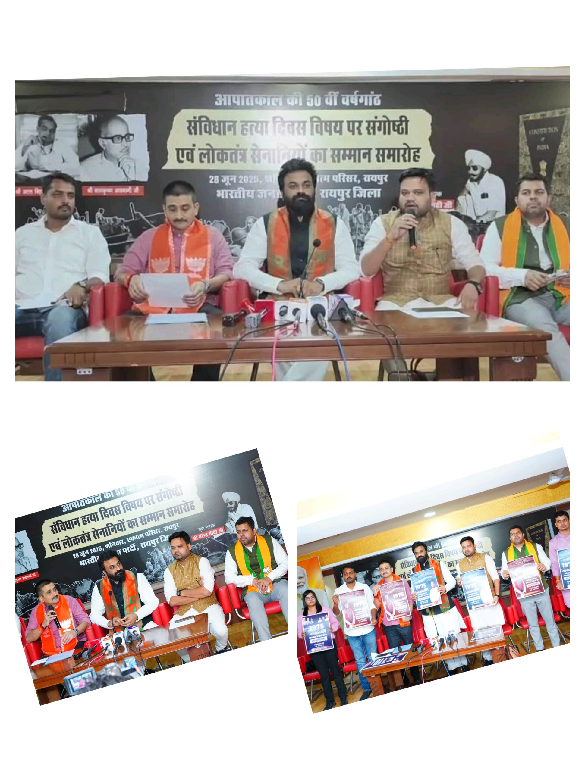 त्रिनेत्र टाइम्स कोरबा ****/ रायपुर। भारतीय जनता पार्टी कार्यालय एकात्म परिसर में आज पत्रकार वार्ता आहूत की गई। पत्रकारों को संबोधित करते हुए भारतीय जनता युवा मोर्चा के प्रदेश प्रभारी आलोक डंगस ने कहा कि भारतीय जनता युवा मोर्चा 25 जून 1975 को लगे आपातकाल के विषय को लेकर एक दिवसीय युवा संसद का कार्यक्रम रायपुर के अग्रसेन धाम में 2 जुलाई 2025 करेंगे। जहां प्रदेश भर से युवा इस संसद में प्रतिनिधि शामिल होंगे। उन्होंने कहा कि युवा संसद का आयोजन का उद्देश्य आपातकाल के कालखंड जो स्वतंत्र भारत इतिहास के सबसे अलोकतांत्रिक काल रहा जिसमें तत्कालीन प्रधानमंत्री इंदिरा गांधी की कांग्रेस सरकार के द्वारा असंवैधानिक रूप से आपातकाल लगाकर संविधान की हत्या की गई, साथ ही देश के नागरिकों को मिलने वाले संवैधानिक अधिकारों का भी निलंबन हुआ और लोकतांत्रिक व्यवस्था पूरी तरह से चरमरा गई थी इसके बारे में युवाओं को जानकारी देकर जागरूक करना है।