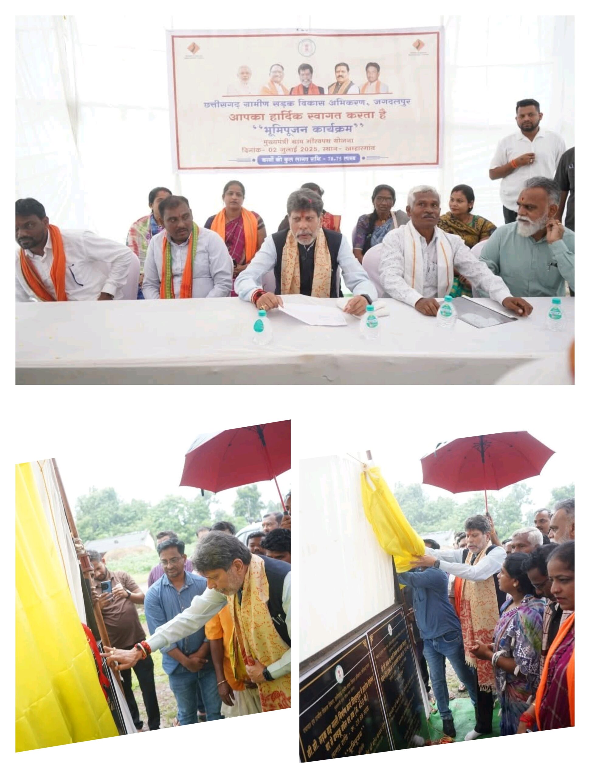 त्रिनेत्र टाइम्स कोरबा ****/ *जगदलपुर।* जगदलपुर विधानसभा क्षेत्र में दरभा विकासखण्ड में आज भाजपा प्रदेश अध्यक्ष एवं विधायक किरण देव व विधायक विनायक गोयल ने ग्राम चिंगपाल में लाखों रुपए के विकास कार्यों का विधिवत भूमिपूजन किया। इसमें भाजपा प्रदेश अध्यक्ष एवं विधायक श्री देव ने मुख्यमंत्री ग्राम गौरव पथ योजना, बस्तर विकास प्राधिकरण के तहत ग्राम चिंगपाल में माशा मांझी गुड़ा में सायकल स्टैंड निर्माण लागत 10.50 लाख, ग्राम लेण्ड्रा में सीसी सडक लागत 7.80 लाख, व्यावसायिक परिसर निर्माण लागत 15 लाख रुपए, ग्राम ककनार में सांस्कृतिक भवन निर्माण लागत 05 लाख, सीसी सडक निर्माण लागत 05.20 लाख रुपए, कोयनार में सीसी सडक निर्माण 5.20 लाख ररुपए, ग्राम कोटमसर में प्रतीक्षा शेड निर्माण लागत 12.77 लाख, ग्राम कान्दानार सीसी सडक निर्माण लागत 02.70 लाख, ग्राम छिन्दपुर प्राथमिक शाला नवीन भवन निर्माण लागत 20.30 लाख , ग्राम सेड़वा में सी सी सडक निर्माण लागत 08 लाख रूपए विभिन्न विकास कार्यों का कुल लागत 92.37 लाख रूपए का विधिवत भूमिपूजन किया।