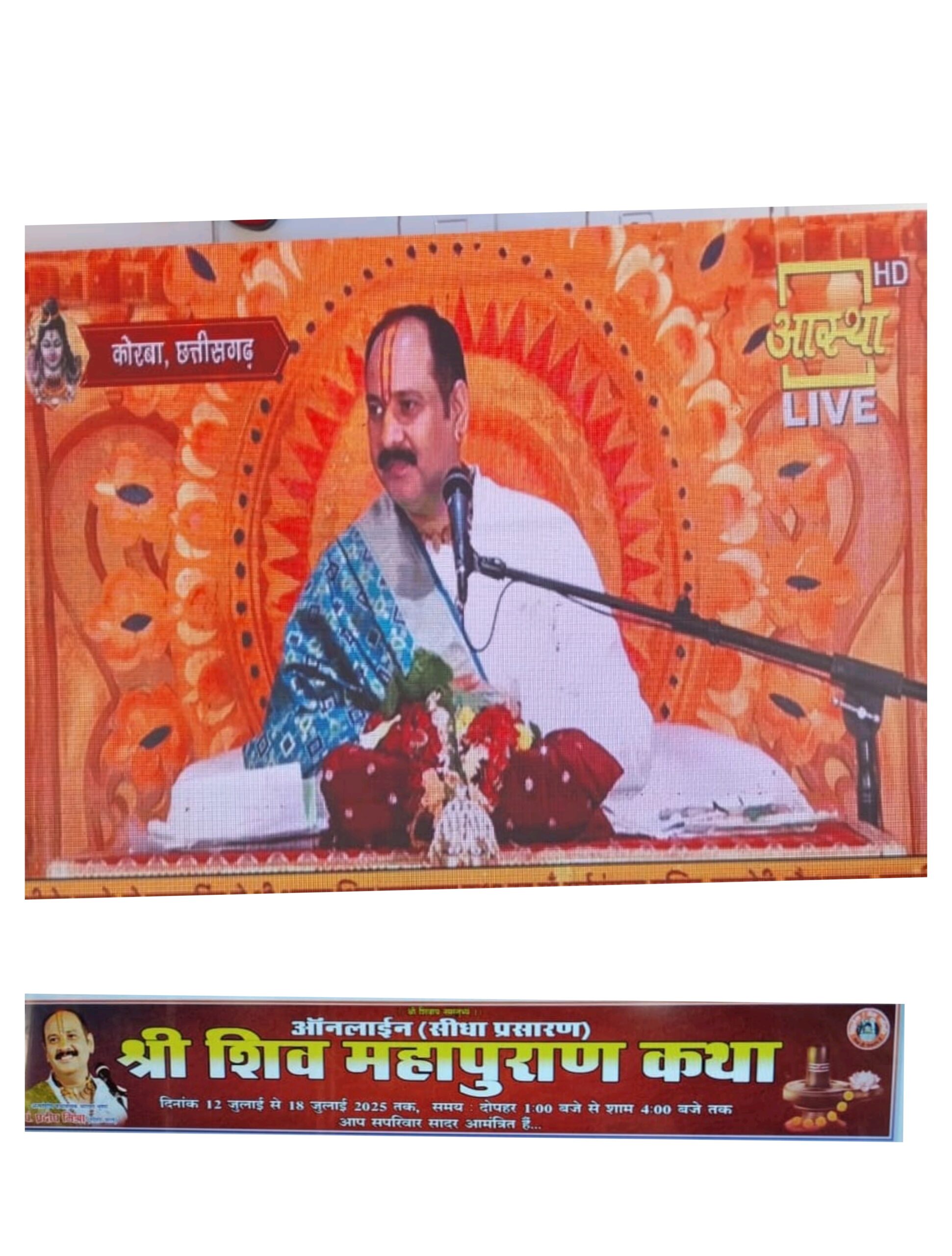 त्रिनेत्र टाइम्स कोरबा ****/ कोरबा। अंतर्राष्ट्रीय ख्यातिप्राप्त कथा वाचक भागवत भूषण पंडित प्रदीप मिश्रा जी की शिव महापुराण कथा, जो कोरबा में 12 जुलाई से 18 जुलाई तक आयोजित है, अब ऑनलाइन माध्यम से श्रद्धालुओं के लिए उपलब्ध कराई जा रही है। कथा का सीधा प्रसारण पतंजलि चिकित्सालय श्री शिव औषधालय, निहारिका महानदी कॉम्प्लेक्स प्रांगण में किया जा रहा है।