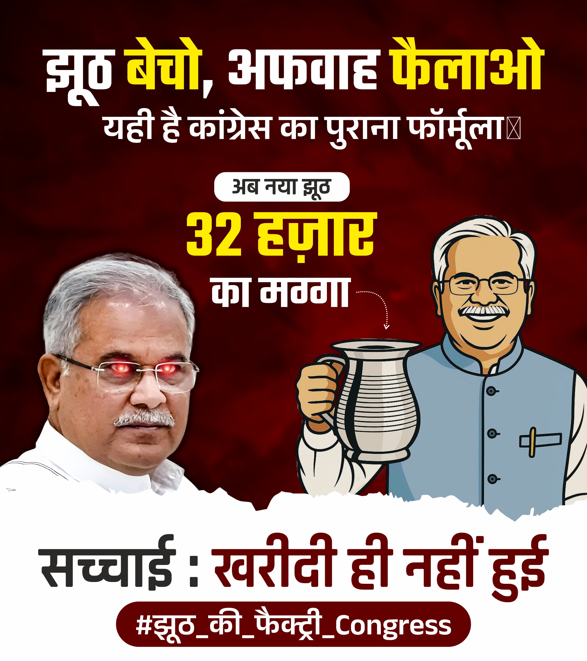 рддреНрд░рд┐рдиреЗрддреНрд░ рдЯрд╛рдЗрдореНрд╕ рдХреЛрд░рдмрд╛ ****/┬а ┬ард░рд╛рдпрдкреБрд░ред рдХрд╛рдВрдЧреНрд░реЗрд╕ рджреНрд╡рд╛рд░рд╛ рд╕реЛрд╢рд▓ рдореАрдбрд┐рдпрд╛ рдкрд░ рдЪрд▓рд╛рдП рдЧрдП тАЬтВ╣32,000 рдореЗрдВ рдПрдХ рд╡рд╛рдЯрд░ рдЬрдЧ рдХреА рдЦрд░реАрджреАтАЭ рд╕рдВрдмрдВрдзреА рджрд╛рд╡реЗ рдХреЛ рднрд╛рдЬрдкрд╛ рдиреЗ рдкреВрд░реА рддрд░рд╣ рд╕реЗ рдЭреВрдард╛ рдФрд░ рднреНрд░рд╛рдордХ рдХрд░рд╛рд░ рджреЗрддреЗ рд╣реБрдП рддрдереНрдпреЛрдВ рдХреЗ рд╕рд╛рде рдЗрд╕рдХрд╛ рдЦрдВрдбрди рдХрд┐рдпрд╛ рд╣реИред рднрд╛рдЬрдкрд╛ рдкреНрд░рджреЗрд╢ рдкреНрд░рд╡рдХреНрддрд╛ рджреЗрд╡рд▓рд╛рд▓ рдард╛рдХреБрд░ рдиреЗ рдХрд╛рдВрдЧреНрд░реЗрд╕ рдХреЗ рдЗрд╕ рджреБрд╖реНрдкреНрд░рдЪрд╛рд░ рдкрд░ рддреАрдЦрд╛ рд╣рдорд▓рд╛ рдмреЛрд▓рд╛ рдФрд░ рдХрд╣рд╛ рдХрд┐ рдпрд╣ рдорд╣рдЬ рдЬрдирддрд╛ рдХреЛ рдЧреБрдорд░рд╛рд╣ рдХрд░рдиреЗ рдФрд░ рдореБрдЦреНрдпрдордВрддреНрд░реА рд╢реНрд░реА рд╡рд┐рд╖реНрдгреБрджреЗрд╡ рд╕рд╛рдп рдХреЗ рдиреЗрддреГрддреНрд╡ рд╡рд╛рд▓реА рднрд╛рдЬрдкрд╛ рд╕рд░рдХрд╛рд░ рдХреА рдЫрд╡рд┐ рдХреЛ рдзреВрдорд┐рд▓ рдХрд░рдиреЗ рдХрд╛ рдХреБрддреНрд╕рд┐рдд рдкреНрд░рдпрд╛рд╕ рд╣реИред