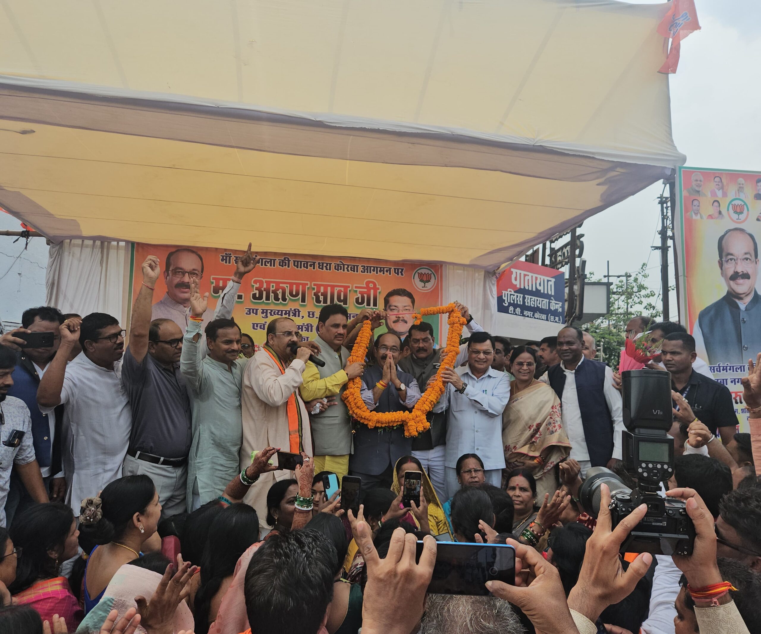कोरबा में भाजपा ने दिखाया ताकत का जलवा: उपमुख्यमंत्री अरुण साव के स्वागत में गूंजे जयकारे, ढोल-नगाड़ों और आतिशबाजी से सजा ट्रांसपोर्ट नगर चौक