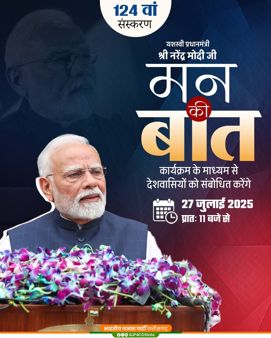 त्रिनेत्र टाइम्स कोरबा ****/ भारतीय जनता पार्टी कोरबा जिला अध्यक्ष गोपाल मोदी ने जिले के सभी कार्यकर्ताओं, पदाधिकारियों और नागरिकों से आह्वान किया है कि वे 27 जुलाई 2025 (रविवार) को प्रातः 11:00 बजे देश के यशस्वी प्रधानमंत्री माननीय श्री नरेंद्र मोदी जी के लोकप्रिय मासिक रेडियो कार्यक्रम ‘मन की बात’ को सामूहिक रूप से अवश्य सुनें।