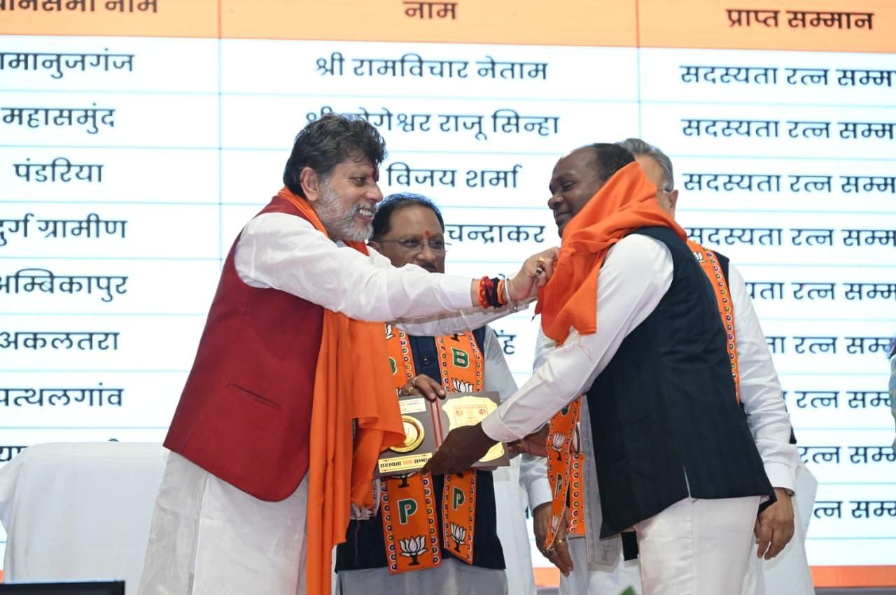 भाजपा उत्कृष्ट सदस्यता सम्मान समारोह में कटघोरा विधायक प्रेमचंद पटेल को “सदस्यता रत्न सम्मान” – 10,177 सदस्य बनाने पर मिला गौरव