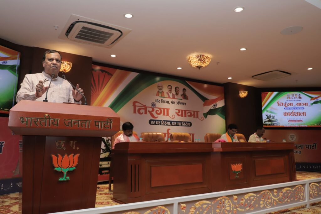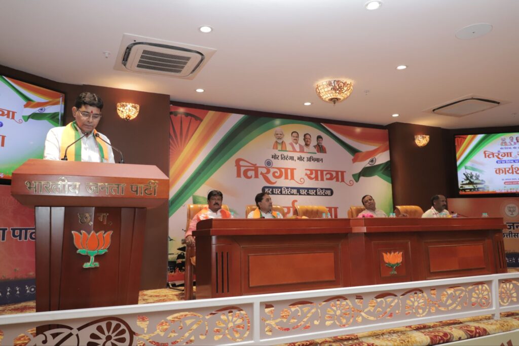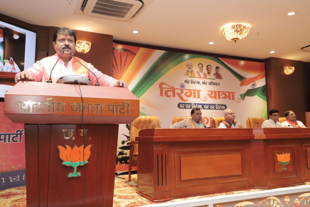 त्रिनेत्र टाइम्स रायपुर। भारतीय जनता पार्टी के राष्ट्रीय महामंत्री एवं हर घर तिरंगा अभियान के राष्ट्रीय समन्वयक सुनील बंसल ने कहा है कि “हर घर तिरंगा” अभियान आजादी के अमृत महोत्सव से प्रारंभ हुआ जो लगातार चल रहा है। इसी तारतम्य में छत्तीसगढ़ में भी हर घर तिरंगा अभियान की सफलता को लेकर प्रदेश जिला एवं मंडल स्तर पर टीम बनाकर कार्यशाला करनी है। श्री बंसल मंगलवार को यहाँ कुशाभाऊ ठाकरे परिसर स्थित प्रदेश भाजपा कार्यालय में हर घर तिरंगा अभियान को लेकर आहूत बैठक को सम्बोधित कर रहे थे।