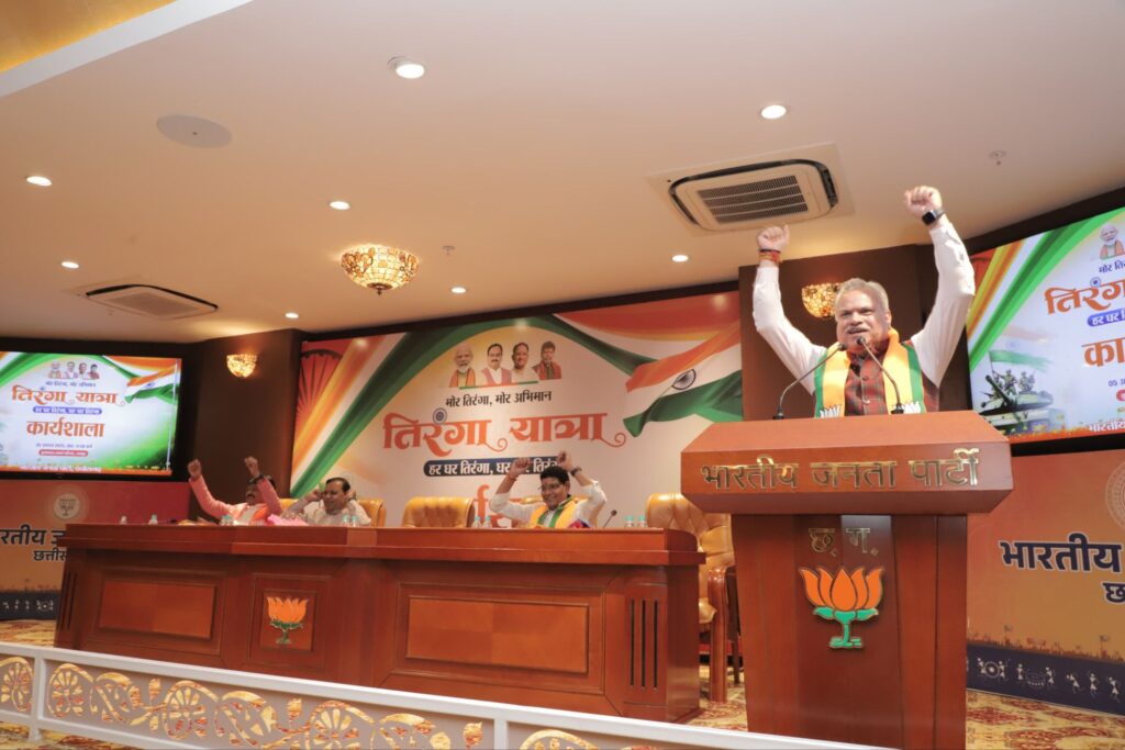 हर घर तिरंगा अभियान कार्यक्रम के संयोजक नीलू शर्मा ने कहा कि ‘मोर तिरंगा-मोर अभिमान’ अभियान पूरे छत्तीसगढ़ और देशभर के विभिन्न राज्यों में चलाया जाएगा। इस अभियान के तहत छत्तीसगढ़ में बूथ स्तर तक जाकर हर घर तिरंगा अभियान को सफल बनाना है। पहलगाम हमले के बाद देश के जवानों ने शौर्य और पराक्रम दिखाया और ऑपरेशन सिंदूर चलाकर पाकिस्तान को करारा जवाब दिया। देश की सेना के पराक्रम को नमन करते हुए श्री शर्मा ने कहा कि मोर तिरंगा मोर अभियान कार्यक्रम संभाग स्तर पर एक बड़ी कार्यशाला के माध्यम से करेंगे। इसके पश्चात जिला, मंडल एवं बूथ स्तर पर कार्यशालाएँ रखी जाएंगीं। कार्यक्रम का संचालन प्रदेश महामंत्री एवं नागरिक आपूर्ति निगम के अध्यक्ष संजय श्रीवास्तव ने किया। कार्यक्रम में हर घर तिरंगा अभियान कार्यक्रम के सदस्य श्रीमती हर्षिता पांडेय, विश्वविजय सिंह तोमर, दीपेश अरोरा सहित सभी जिलों के जिला संयोजक, सह संयोजक, एवं भाजपा पदाधिकारी एवं कार्यकर्ता मौजूद रहे।